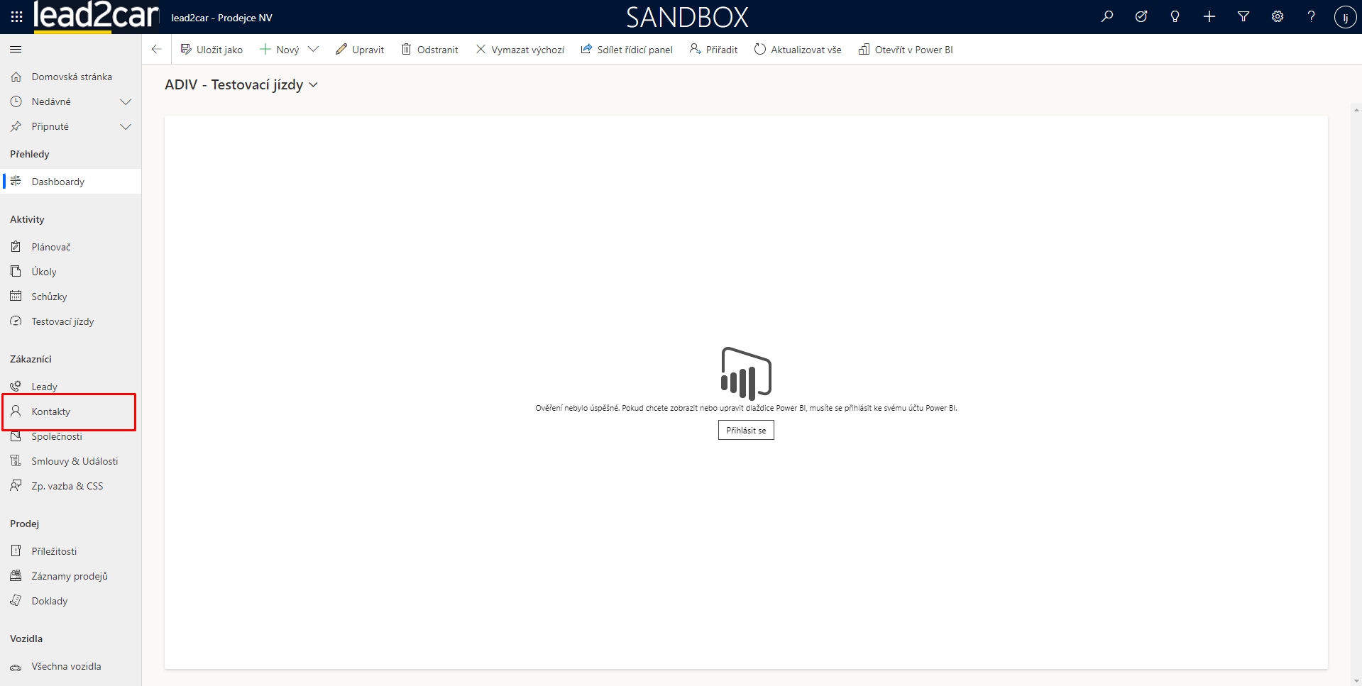 Entita "Kontakty" shromažďuje detaily o klientech - fyzických osobách. Zatím nejsou k dispozici žádné záznamy pro retailové zákazníky. V tento moment jsou určeny pouze pro fleet. Jsou zde nejen zaznamenány kontaktní údaje, ale také k nim lze přiřadit vozidla z databáze, sledovat jejich nákupy.V tento moment.
