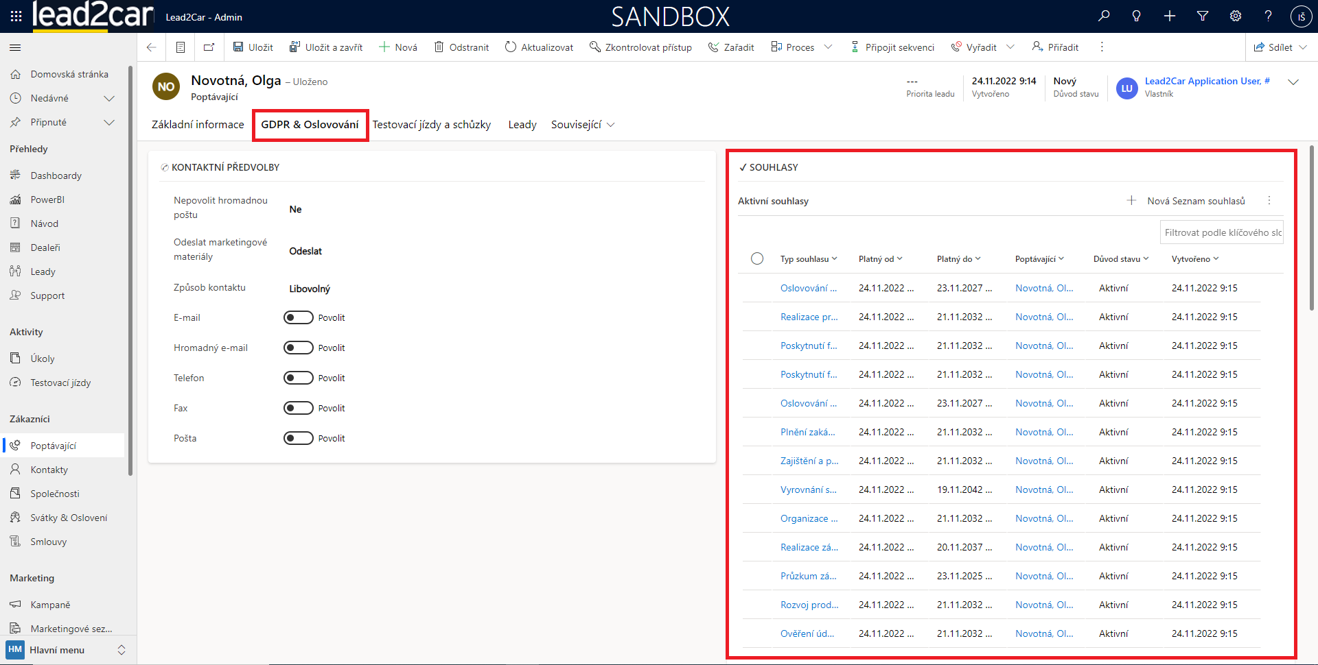Pro odvolání GDPR souhlasu je potřeba otevřít si daného poptávajícího.