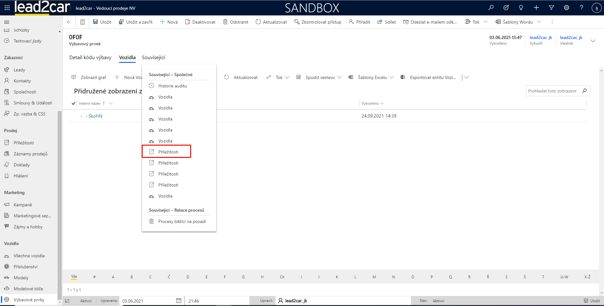 V entitě "Výbavové prvky" lze nalézt seznam, kódy a detaily nabízených výbavových prvků.