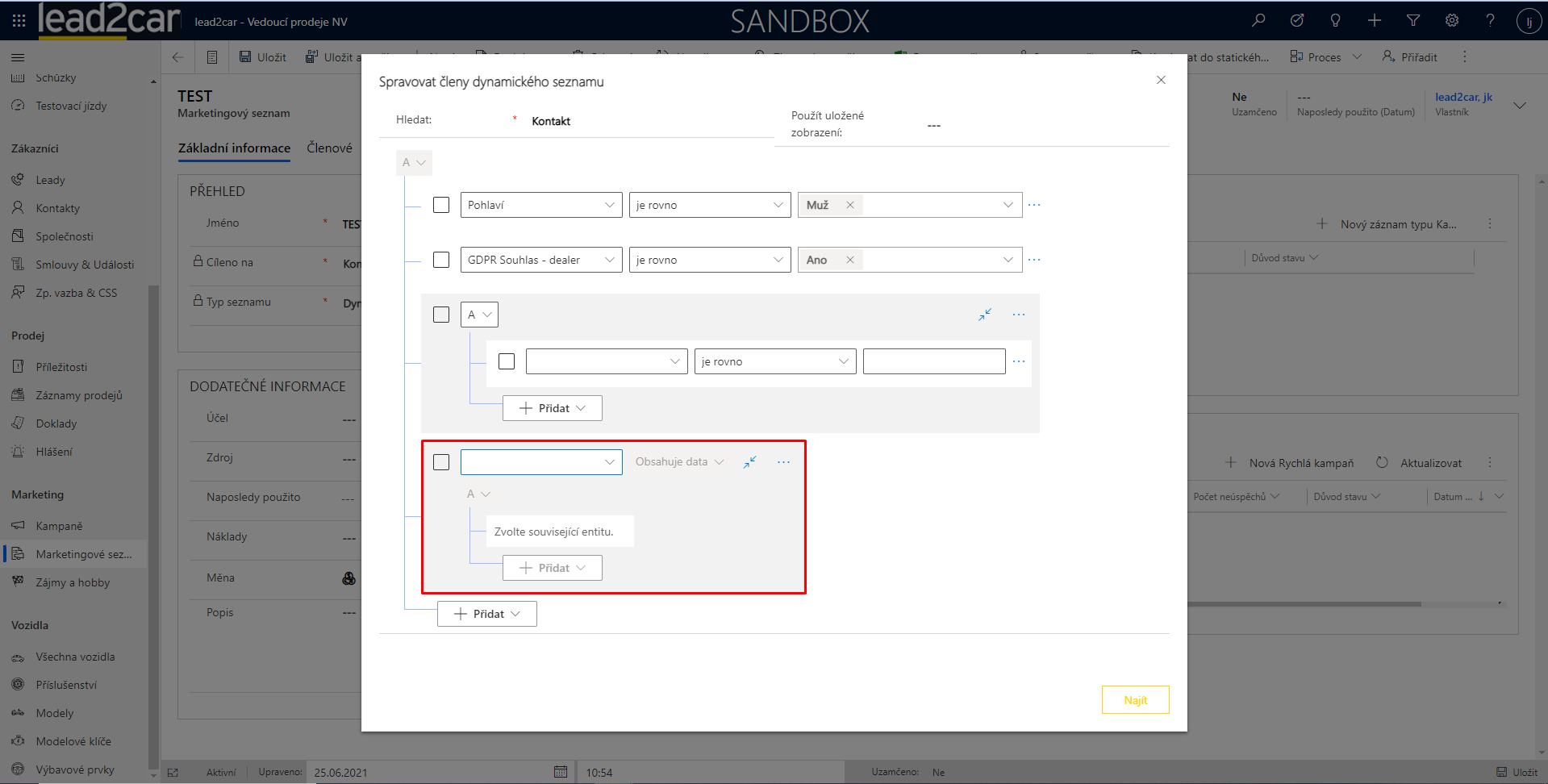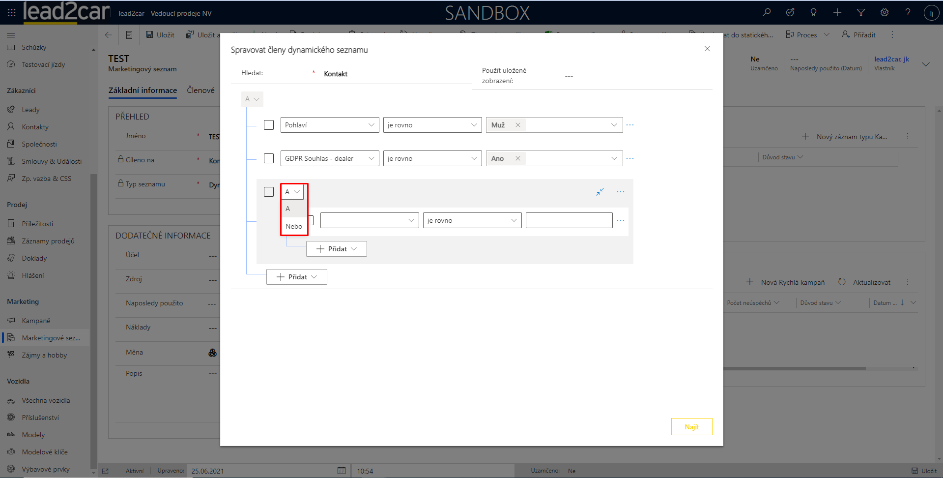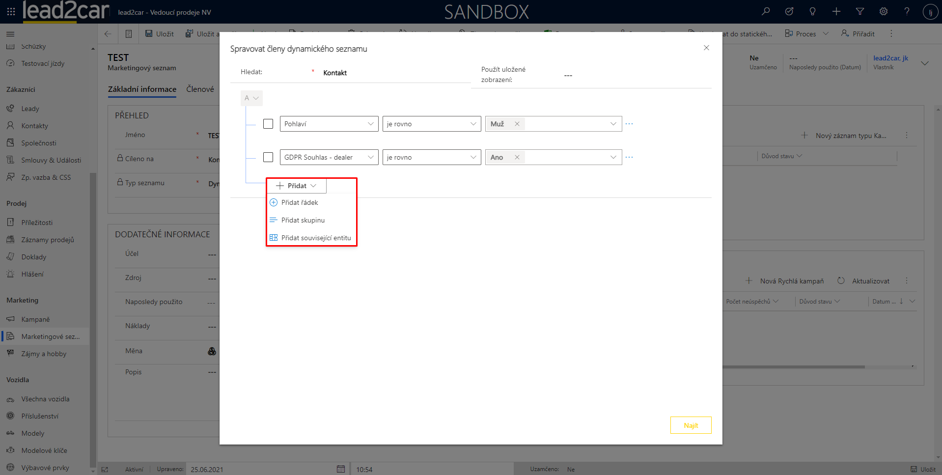 Členové jsou voleni podle různých kritérií, jež je možné nastavit. Kritéria se nastavují pomocí tlačítka “Přidat“ a zvolení konkrétního kritéria.