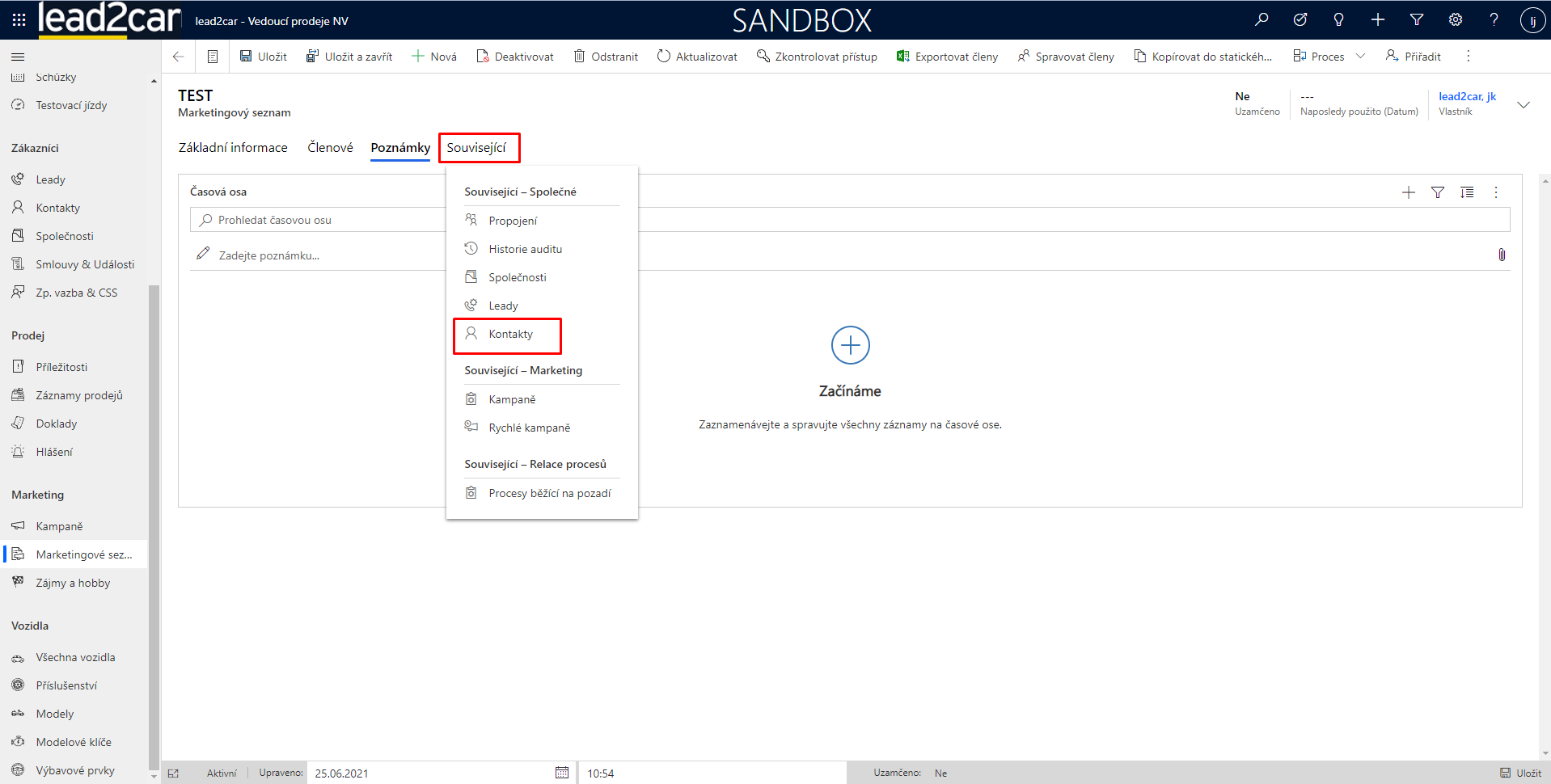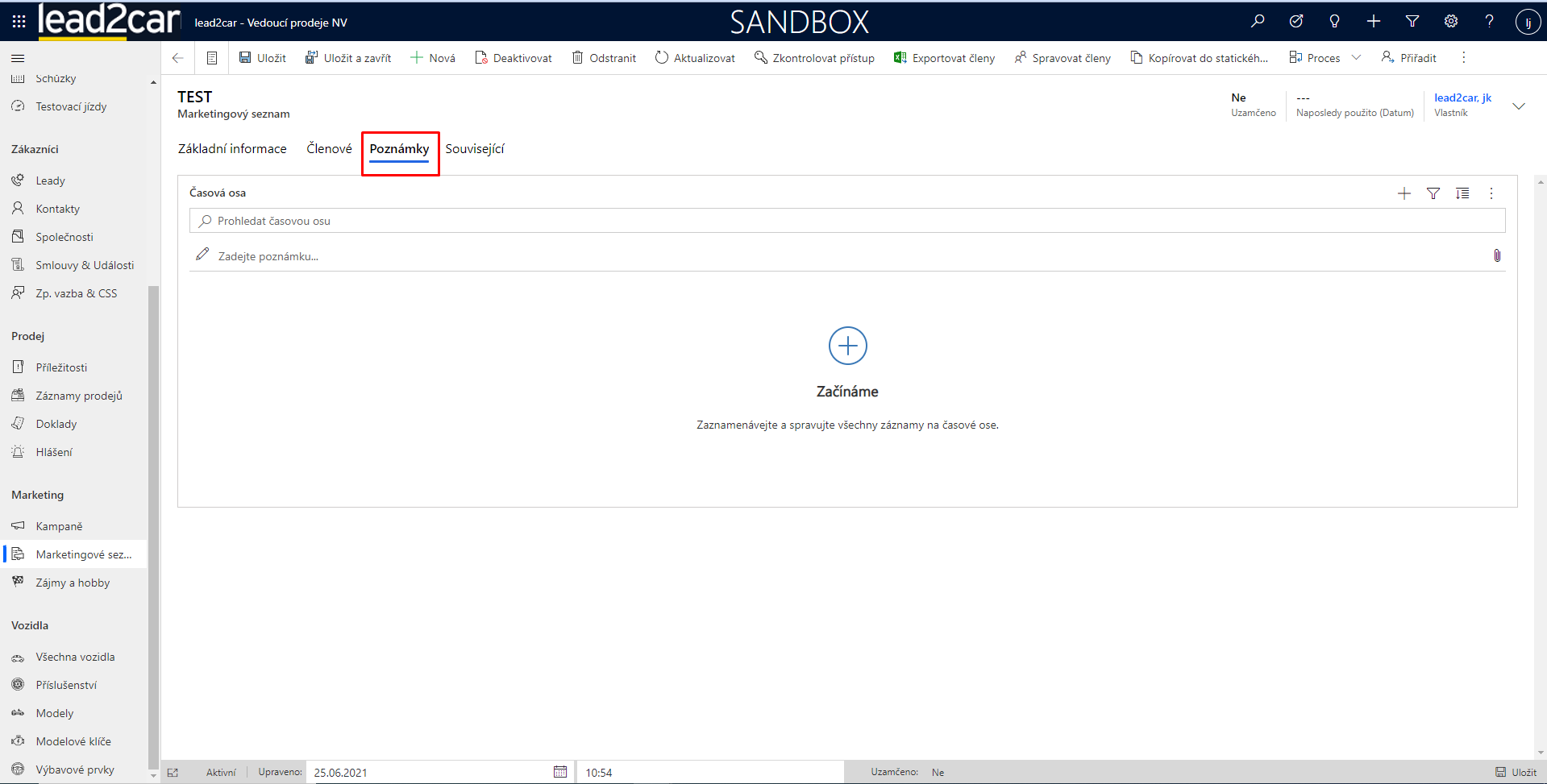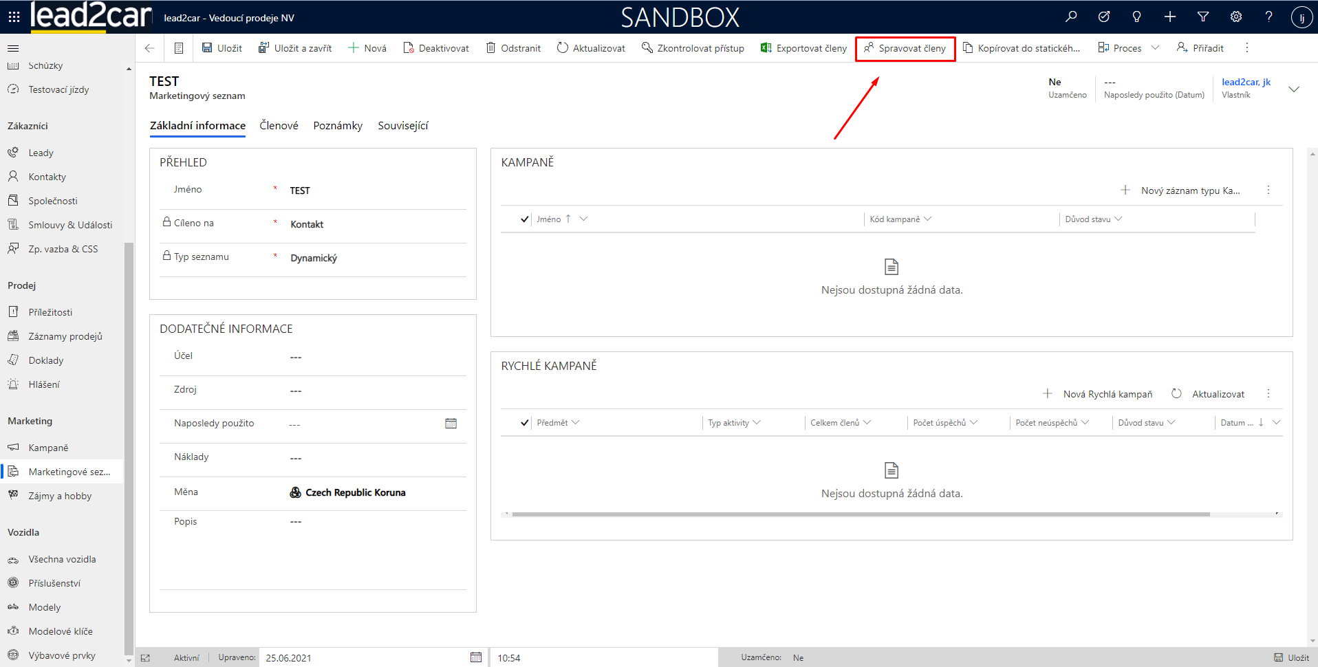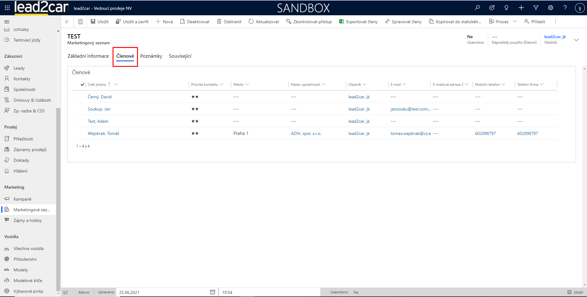 Po rozkliknutí marketingových seznamů v levém menu bude otevřen aktuální seznam.